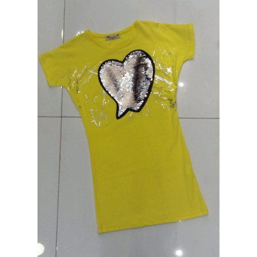 • Футболка для девочки паетки Сердце MiniModa желтый