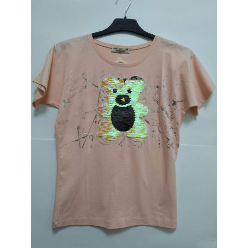 Футболка для девочки с паетками перевертыш Mишка MiniModa розовый